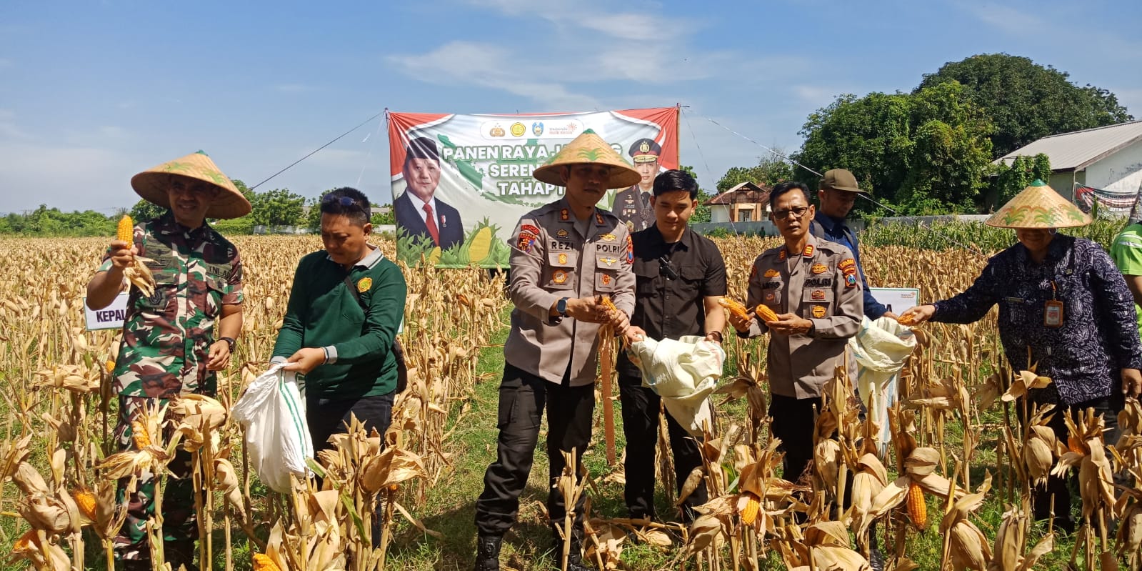 Sementara itu, Kapolres Situbondo AKBP Rezi Dharmawan menyampaikan bahwa saat ini sedang melaksanakan panen raya jagung serentak tahap satu.meskipun panen tahap satu ini sebenarnya di bulan Februari karena di bulan Februari tanamnya lebih awal, tapi sukur Alhamdulillah hasil jagung tadi saya Taya cukup baik . Meski ditanam dimusim penghujan ternyata berhasil, mudah mudahan ini langkah awal kita,” ujar Kapolres AKBP Rezi Dharmawan.
