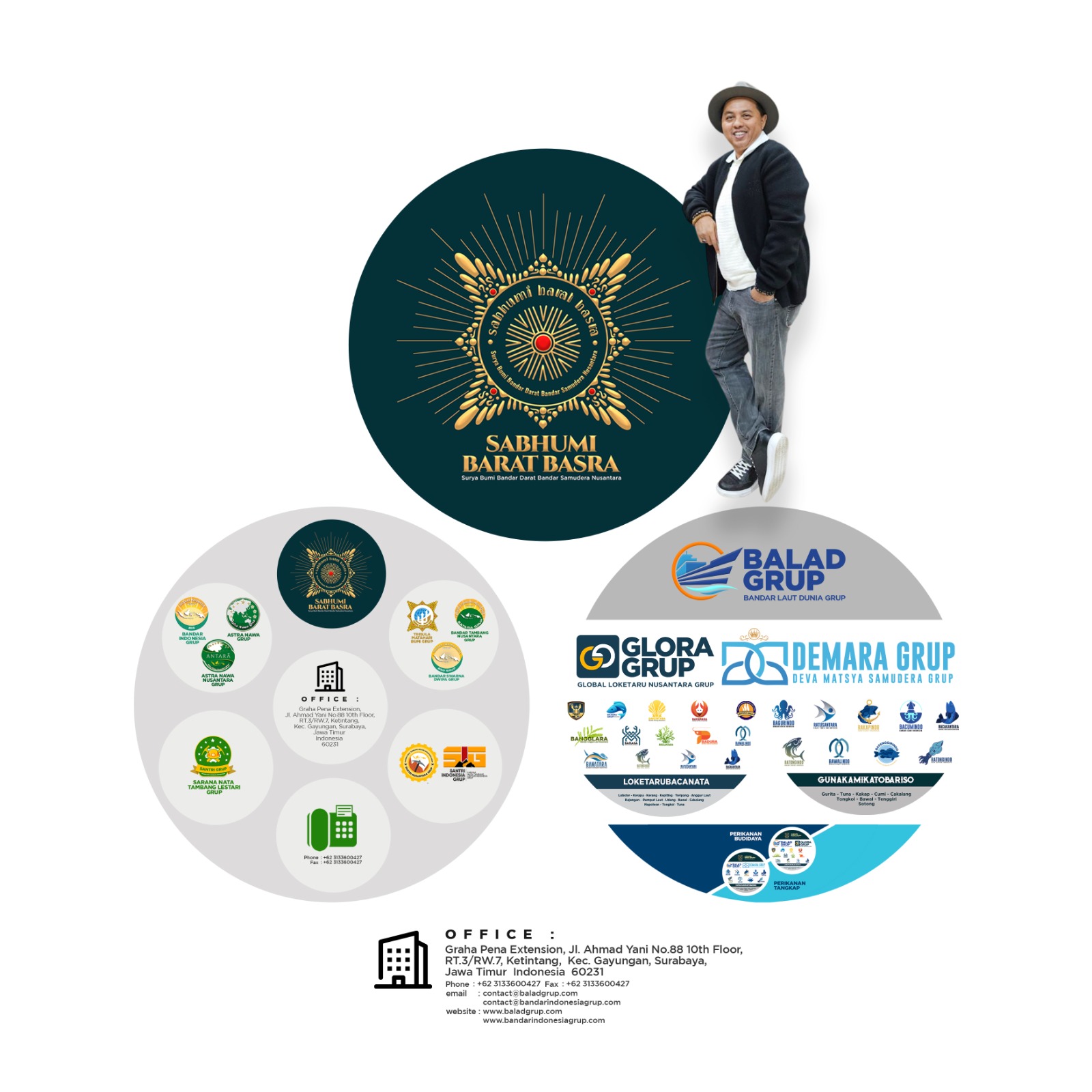 Oleh karena itu, melalui perusahaan raksasa Surya Bhumi Bandar Darat Bandar Samudera Nusantara Grup (Sabhumi Barat Basra Grup) akan mengerahkan induk perusahaan Bandar Laut Dunia Grup (BALAD Grup) untuk melakukan Giat Usaha Perikanan Budidaya di Pulau Belitung.” Jadi BALAD Grup sudah selesai memetakan potensi Perikanan Budidaya di Pulau Belitung khususnya di Kabupaten Belitung dan sedang memproses perizinan budidaya di Laut Belitung seluas 1000 Ha dibagi menjadi 10 Area Budidaya dengan luas per area 100 Ha,” sampainya.